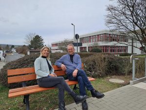„Wir freuen uns, dass wir von dem Spendenaufruf für Außenbänke erfahren haben und dem Rehazentrum eine schöne stabile Außenbank spenden können“, sagt Michaela Wolff, Vorsitzende der Fluthilfe e. V. und übergibt offiziell den neue Sitzmöglichkeit im Außenbereich.
